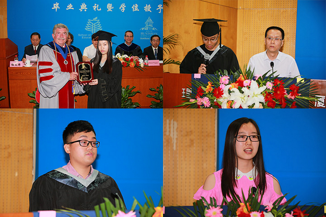 楊樹興副校長發(fā)表致辭,他首先向即將邁向人生新旅程的畢業(yè)生們表示熱烈的祝賀,并向?qū)3虂砣A參加畢業(yè)典禮的猶他州立大學嘉賓們表示誠摯的歡迎。他叮囑同學們要懂得感恩、珍惜時光、勇于承擔肩上的責任。同學們離開校園之后,將融入社會的熔爐,面對充滿挑戰(zhàn)的未來,他鼓勵同學們自信、自強、進取。無論同學們在人生路上遇到什么境遇,母??偸窃谏砗竽P(guān)注和支持他們。最后,他期待同學們走出校園之后能取得更大的成功,并希望同學們能夠繼續(xù)關(guān)心母校的建設和發(fā)展,?;丶铱纯?。
