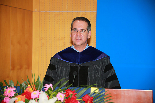 副教務長Robert W. Wagner教授發(fā)表致辭,他表示非常榮幸與我校進行合作,并對我校師生的熱情友好表示感謝,對教職員工的辛勤付出表示敬意。他簡要介紹了猶他州立大學的學校概況及學科優(yōu)勢,表示同學們所屬的亨茨曼商學院是美國西部歷史最悠久的商學院。在如今全球化的大背景下,兩校合作辦學的教育實踐消除了國界的阻隔,把世界融為一所大校園,為過去和現(xiàn)在搭建了橋梁,為國際社會做出了貢獻。在即將踏上人生下一個臺階之際,他希望同學們無論是就業(yè)還是繼續(xù)深造,都要學以致用,永遠不要停下學習的腳步。最后,他向所有在座學生表達了美好的祝愿。