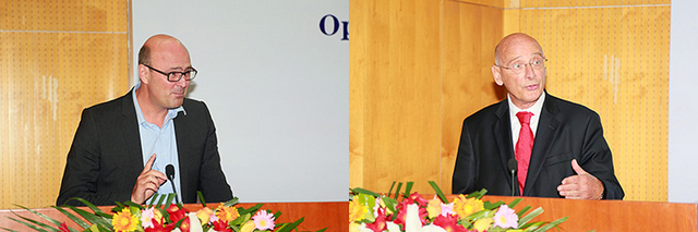 康斯坦斯應用科學大學Josef Wieland教授與Roland Luxemburger先生共同給第七期畢業(yè)生頒發(fā)了學位證書并給予了美好祝愿