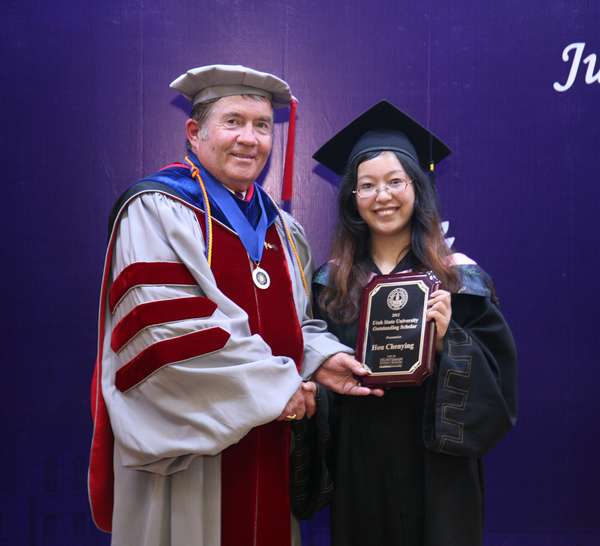 猶他州立大學(xué)中國(guó)項(xiàng)目副主任賴超群博士首先宣讀了畢業(yè)生名單,商學(xué)院助理院長(zhǎng)Dave Patella博士給全體畢業(yè)生一一頒發(fā)了猶他州立大學(xué)理學(xué)士學(xué)位證書(shū)并合影留念。Dwight Israelsen教授代表猶他州立大學(xué)商學(xué)院授予侯琛穎同學(xué)2012年度杰出畢業(yè)生稱號(hào),并頒發(fā)杰出畢業(yè)生獎(jiǎng)牌。