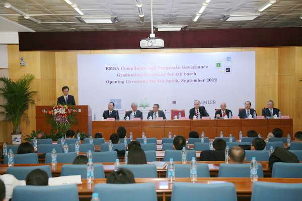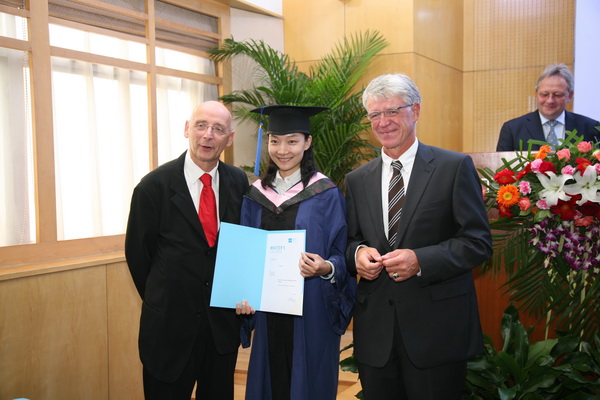 2012年9月7日下午,在我校國際教育交流大廈三層報告廳隆重舉行我校與德國康斯坦斯應用科學大學合作為國際著名奔馳汽車生產商戴姆勒公司舉辦的EMBA項目第四期畢業(yè)典禮暨第六期新生開學典禮。出席典禮的嘉賓有:北京理工大學副校長孫逢春教授、戴姆勒東北亞地區(qū)首席財務官Helmut Ruhl先生、戴姆勒東北亞投資有限公司執(zhí)行副總裁Matthias Zeuch先生、因戈爾斯塔特應用科學大學Thomas Doyé教授、康斯坦斯應用科學大學Josef Wieland教授、康斯坦斯應用科學大學繼續(xù)教育部部長Roland Luxemburger先生、我校國際教育合作處王慶林處長、國際教育合作學院梅文博院長、羅佳書記、第四期全體學員和第六期新學員。典禮由梅文博教授主持。