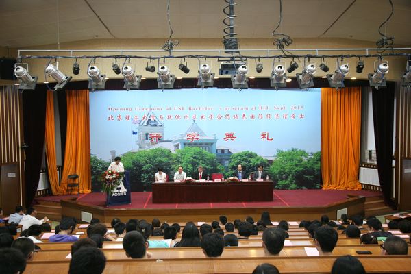 9月7日上午,北京理工大學(xué)與美國猶他州立大學(xué)合作辦學(xué)項(xiàng)目2013級(jí)新生開學(xué)典禮在校中心教學(xué)樓一層報(bào)告廳隆重舉行。參加開學(xué)典禮的有北京理工大學(xué)副校長趙顯利教授、猶他州立大學(xué)John Huntsman商學(xué)院中國學(xué)術(shù)項(xiàng)目主任Dwight Israelsen教授、我校國際交流合作處王慶林處長、國際教育學(xué)院梅文博院長、羅佳書記、蔣志湘副院長、教師代表、項(xiàng)目管理老師以及全體新生。典禮由蔣志湘副院長主持。
