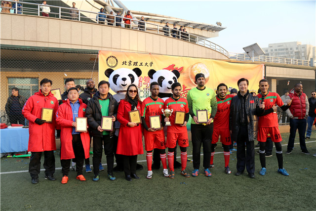 2015年12月31日下午,由學(xué)校辦公室、留學(xué)生中心、體育部及北京理工科技園發(fā)展公司共同舉辦的北京理工大學(xué)首屆“留學(xué)北理賀歲杯”師生足球友誼賽在北理工西足球場(chǎng)拉開帷幕,由我校教工隊(duì)對(duì)陣留學(xué)生隊(duì)。