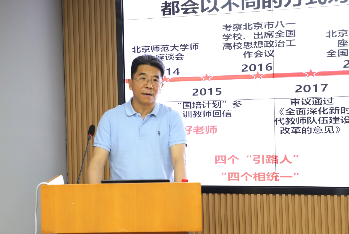 隨后,黨委教師工作部/人力資源部部長(zhǎng)金海波以《堅(jiān)持鑄魂強(qiáng)師·潛心恒心育人》為題進(jìn)行了師德師風(fēng)政策解讀及警示案例通報(bào)。金海波系統(tǒng)梳理了2014年以來習(xí)近平總書記關(guān)于師德師風(fēng)的重要論述;詳細(xì)介紹了師德師風(fēng)總體要求,就“紅七條”、“十準(zhǔn)則”、“十不得”等規(guī)范展開了深刻解讀;全方位展示了學(xué)校在師德師風(fēng)建設(shè)工作中的實(shí)踐探索與創(chuàng)新成果;并結(jié)合典型警示案例,讓圖書館教職工對(duì)師德師風(fēng)建設(shè)有了更為直觀、深刻的認(rèn)識(shí);明確了師德師風(fēng)無小事,必須時(shí)刻增強(qiáng)堅(jiān)守底線、不越紅線的紀(jì)律意識(shí)。