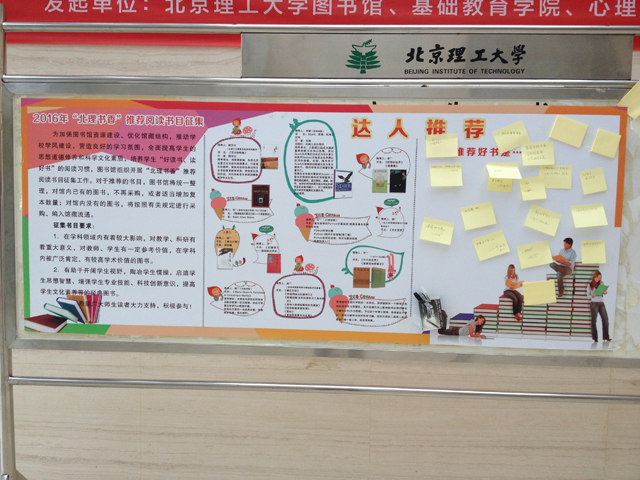 “書香北理”閱讀推廣書目征集,圖書館“線上線下”廣泛邀請(qǐng)讀者推薦好書書目,整理好活動(dòng)前期師生們推薦的閱讀書目,設(shè)計(jì)制作成展板推薦給更多讀者,并吸引更多讀者推薦好書。