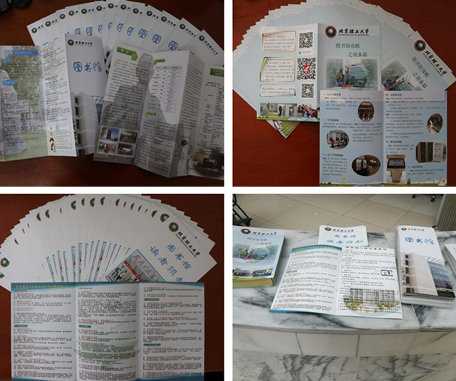 今年圖書(shū)館全新改版了原有的《讀者指南》內(nèi)容,重新設(shè)計(jì)、印制了包括《北京理工大學(xué)圖書(shū)館》、《圖書(shū)館-讀者須知》、《圖書(shū)館攻略-設(shè)備篇》等三種在內(nèi)容上各有側(cè)重、又相互關(guān)聯(lián)的宣傳折頁(yè)。全面向讀者介紹了中關(guān)村校區(qū)和良鄉(xiāng)校區(qū)圖書(shū)館的布局、資源及服務(wù),便于讀者走出空間和校區(qū)限制,充分利用兩個(gè)校區(qū)圖書(shū)館。在學(xué)生事務(wù)中心的協(xié)助下,將9000余份宣傳資料提前放入了每位新生的入學(xué)資料袋中,以確保每位新同學(xué)在進(jìn)入校門的第一時(shí)間認(rèn)識(shí)圖書(shū)館。