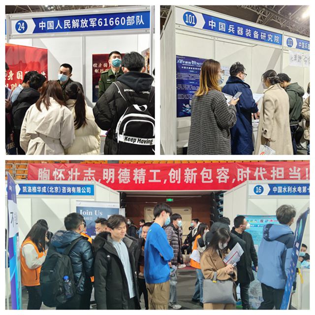 2023年2月27日、2月28日和3月1日,我校分別在良鄉(xiāng)校區(qū)和中關(guān)村校區(qū)連續(xù)舉辦三場(chǎng)針對(duì)2023屆畢業(yè)生的大型綜合招聘會(huì)。本次招聘會(huì)共吸引了包括機(jī)關(guān)、企事業(yè)單位、科研院所、部隊(duì)、高校、金融機(jī)構(gòu)等各行業(yè)442家單位來(lái)校參會(huì),同時(shí)有中國(guó)兵器裝備集團(tuán)、沈陽(yáng)市、南昌市等重點(diǎn)單位和地區(qū)組團(tuán)招聘。這是最近幾年學(xué)校舉辦的最大規(guī)模線下招聘活動(dòng),共提供就業(yè)崗位1萬(wàn)8千余個(gè),招聘需求基本涵蓋我校全部專業(yè)。