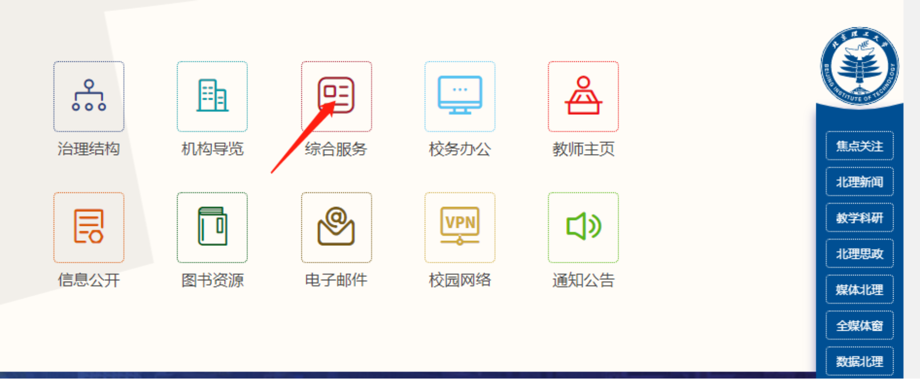 校園網(wǎng)首頁(yè)進(jìn)入“綜合服務(wù)”