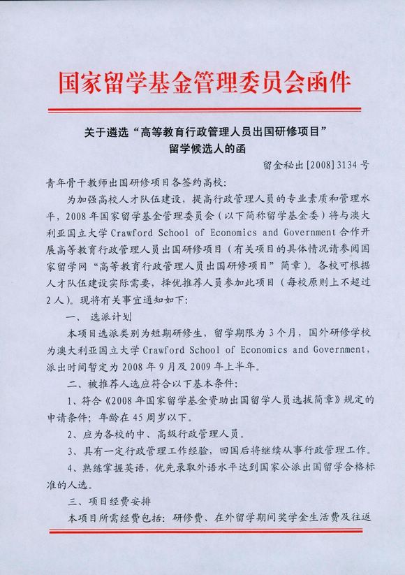 附件一:關(guān)于遴選“高等教育行政管理人員出國(guó)研修項(xiàng)目”留學(xué)候選人的函