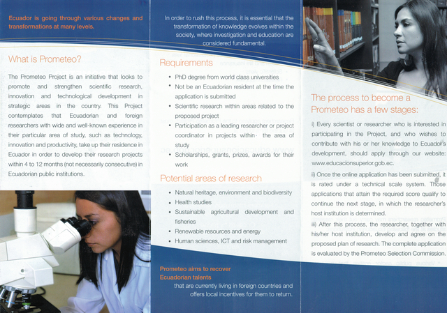 一一今收到厄瓜多爾駐華使館發(fā)來的普羅米修斯項(xiàng)目介紹,該項(xiàng)目旨在鼓勵高等研究人員及科學(xué)家到厄瓜多爾進(jìn)行最長為期一年的學(xué)術(shù)研究和項(xiàng)目開發(fā),費(fèi)用和薪金全部由厄瓜多爾政府承擔(dān)。希望感興趣的老師積極申報(bào)普羅米修斯項(xiàng)目。