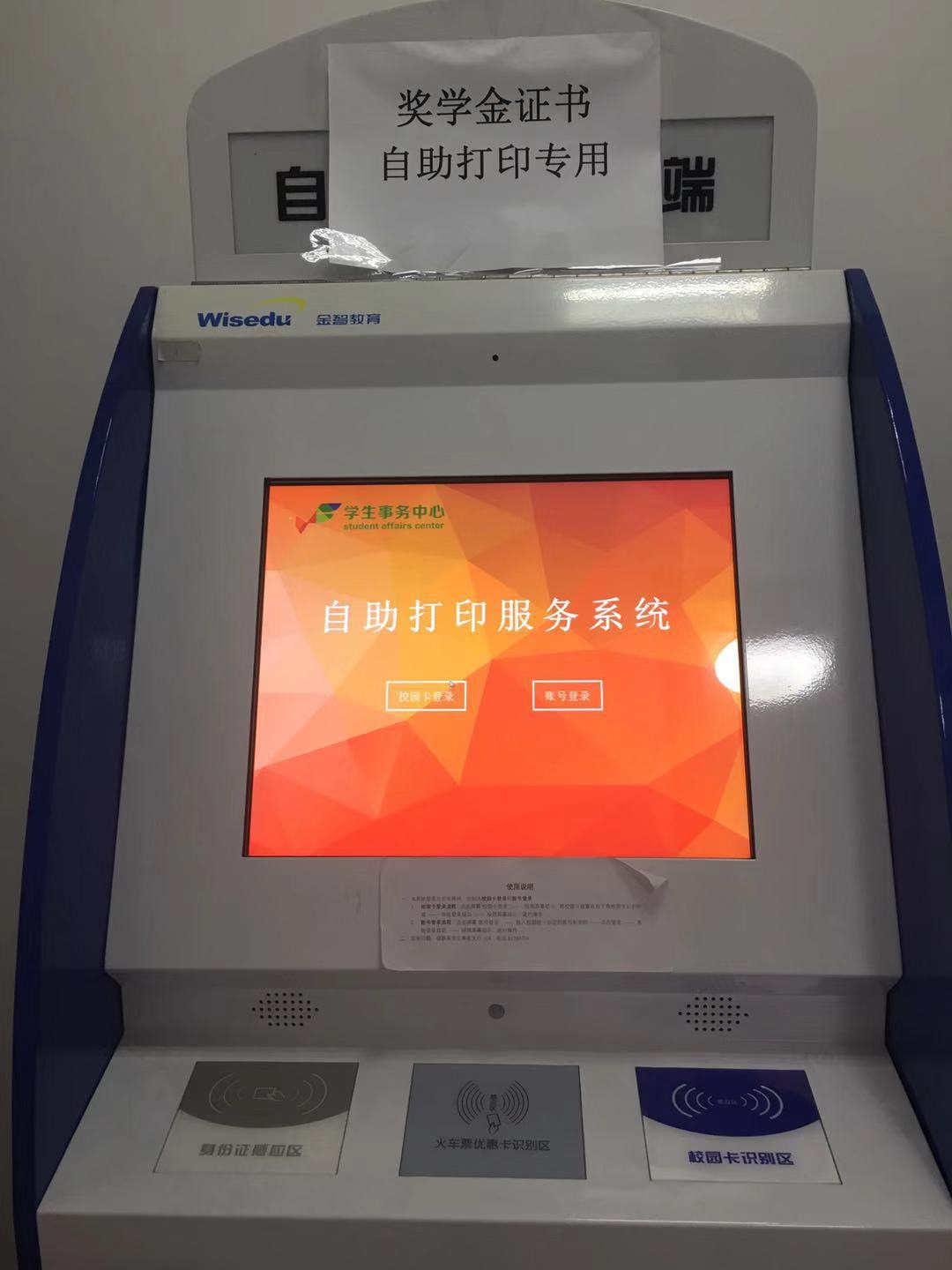 1.獎學金自助打印機上有“獎學金證書打印專用”標識;