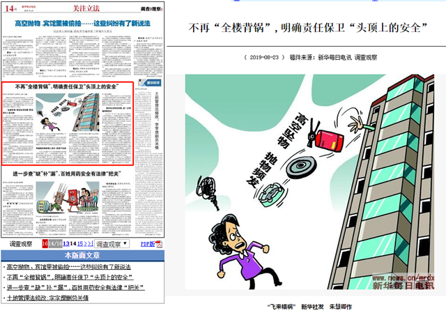“最好的辦法就是攝像取證,還可以通過獎勵的方式征集證據(jù),這具有技術上和經(jīng)濟上的可行性。”中國法學會立法學研究會副會長熊文釗說,“讓舉報高空拋物墜物行為具有很強的正當性和榮譽性,同時也能產(chǎn)生強有力的宣傳效果。”