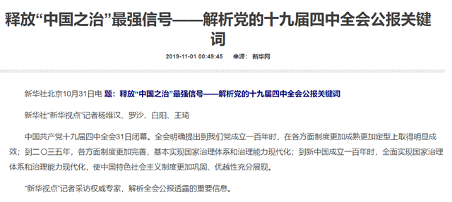 釋放“中國之治”最強(qiáng)信號(hào)——解析黨的十九屆四中全會(huì)公報(bào)關(guān)鍵詞