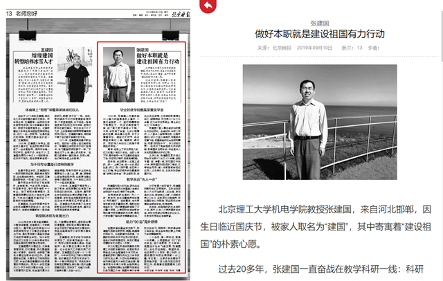北京理工大學(xué)機(jī)電學(xué)院教授張建國,來自河北邯鄲,因生日臨近國慶節(jié),被家人取名為“建國”,其中寄寓著“建設(shè)祖國”的樸素心愿。