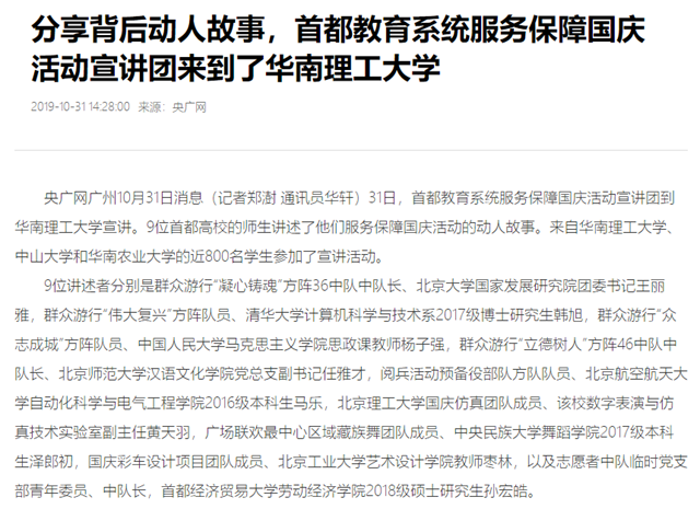 分享背后動(dòng)人故事,首都教育系統(tǒng)服務(wù)保障國(guó)慶活動(dòng)宣講團(tuán)來(lái)到了華南理工大學(xué)