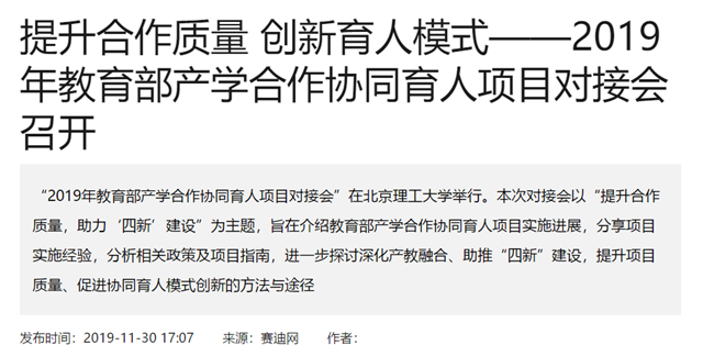 提升合作質(zhì)量 創(chuàng)新育人模式——2019年教育部產(chǎn)學合作協(xié)同育人項目對接會召開