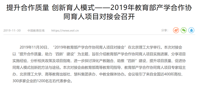 提升合作質(zhì)量 創(chuàng)新育人模式——2019年教育部產(chǎn)學(xué)合作協(xié)同育人項(xiàng)目對(duì)接會(huì)召開(kāi)