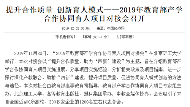 提升合作質量 創(chuàng)新育人模式——2019年教育部產(chǎn)學合作協(xié)同育人項目對接會召開
