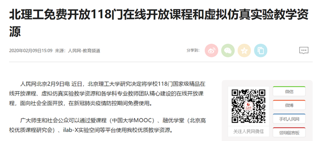 北理工免費開放118門在線開放課程和虛擬仿真實驗教學(xué)資源