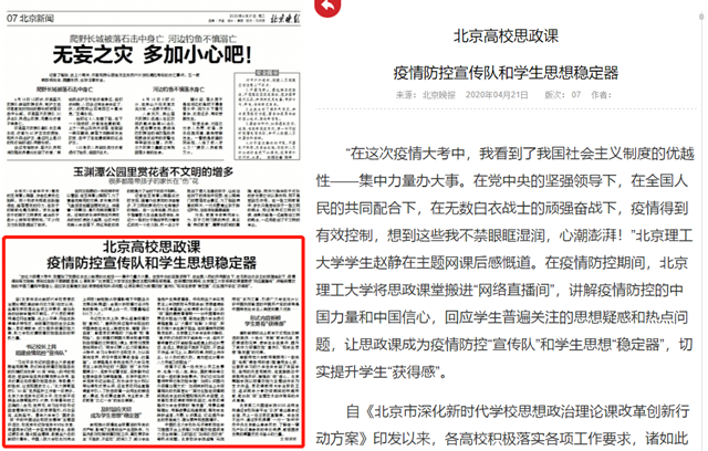 北京高校思政課 疫情防控宣傳隊和學(xué)生思想穩(wěn)定器