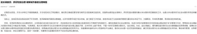 你是否也發(fā)現(xiàn),許多大學(xué)早已不是圍墻高豎,許多名校成為了旅游景點(diǎn),曾經(jīng)束之高閣的象牙塔與城市互動的程度日益加深。全國政協(xié)委員趙長祿表示,抓好校園治理是完善大學(xué)治理體系的基礎(chǔ)性工作,也是大學(xué)治理體系與社會治理體系結(jié)合度最高的點(diǎn)。