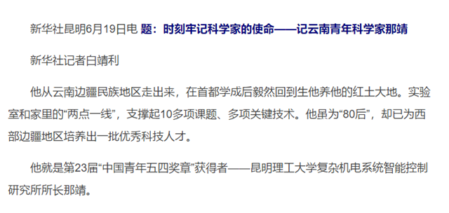 他就是第23屆“中國青年五四獎(jiǎng)?wù)隆鲍@得者——昆明理工大學(xué)復(fù)雜機(jī)電系統(tǒng)智能控制研究所所長那靖。