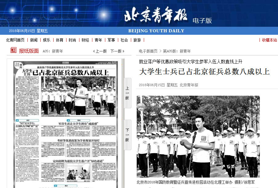 【北京青年報(bào)】北理工教師就“大學(xué)生參軍入伍人數(shù)直線(xiàn)上升 ”發(fā)表觀點(diǎn)