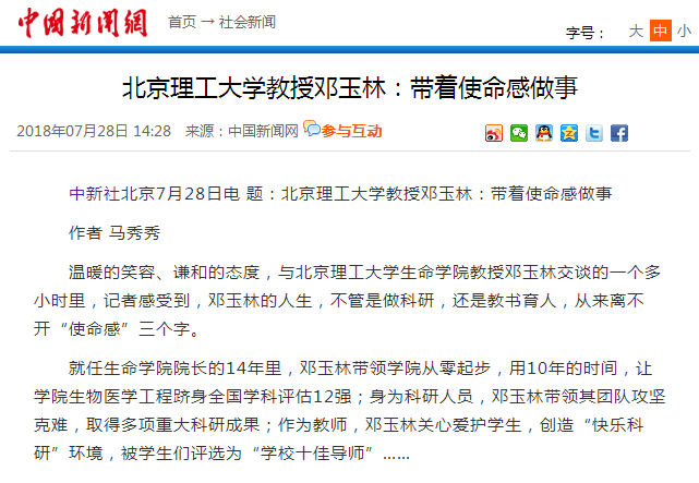 【中國(guó)新聞網(wǎng)】北京理工大學(xué)教授鄧玉林:帶著使命感做事