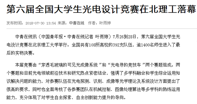 【中青在線】第六屆全國大學(xué)生光電設(shè)計競賽在北理工落幕