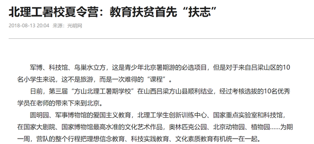 【光明網(wǎng)】北理工暑校夏令營:教育扶貧首先“扶志”