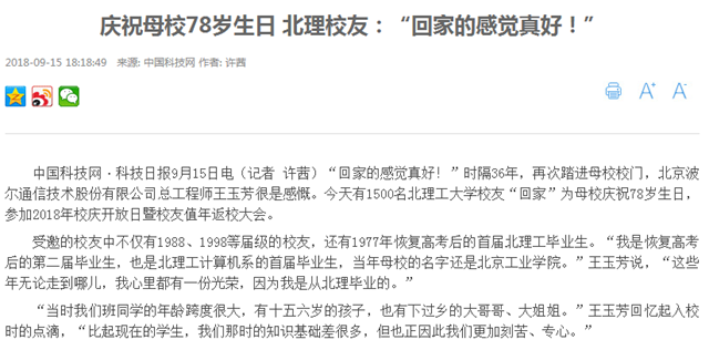 【中國科技網(wǎng)】慶祝母校78歲生日 北理工校友:“回家的感覺真好!”