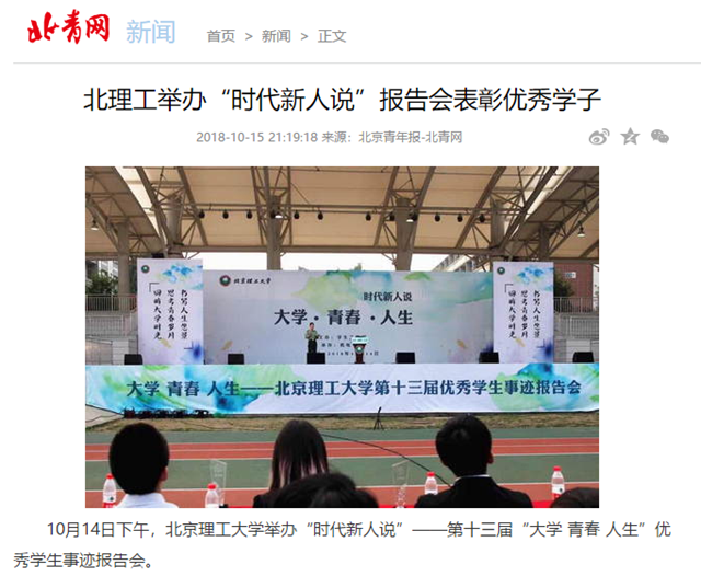 【北青網(wǎng)】北理工舉辦“時代新人說”報告會表彰優(yōu)秀學(xué)子