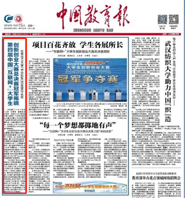 【中國(guó)教育報(bào)】第四屆中國(guó)“互聯(lián)網(wǎng)+”大學(xué)生創(chuàng)新創(chuàng)業(yè)大賽總決賽冠軍揭曉