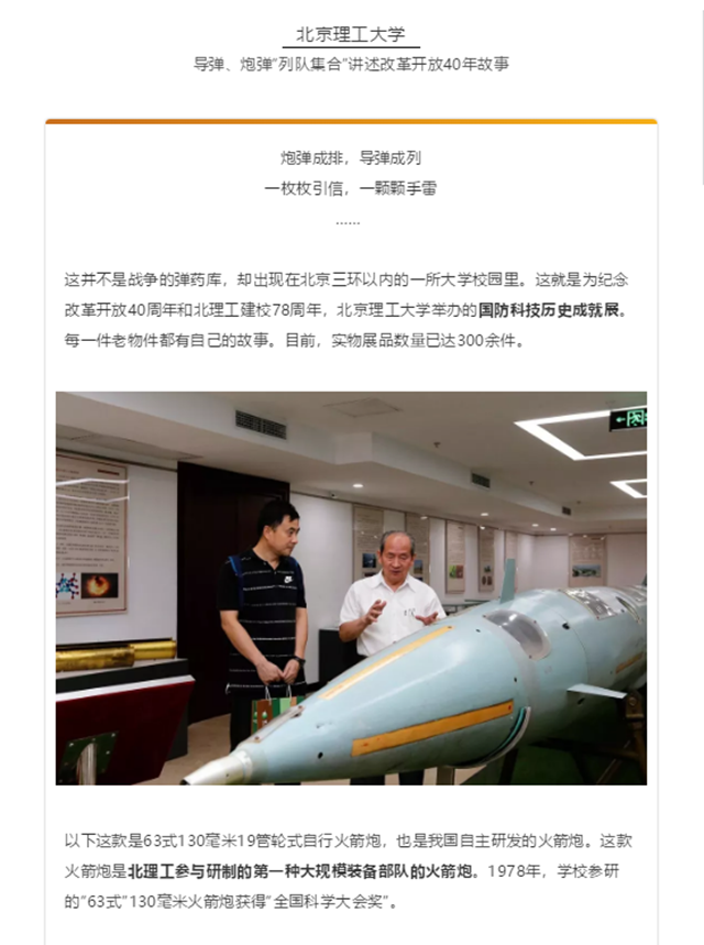 【北青報(bào)-教育圓桌】北京理工大學(xué):導(dǎo)彈、炮彈“列隊(duì)集合”講述改革開放40年故事