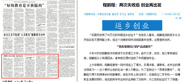【中國青年報】北理工校友程鵬程:兩次失敗后 創(chuàng)業(yè)再出發(fā)
