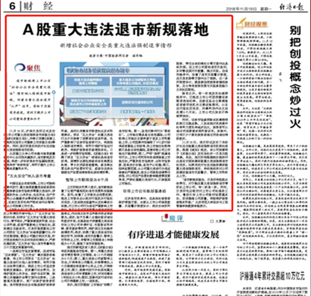 【經(jīng)濟(jì)日?qǐng)?bào)】A股重大違法退市新規(guī)落地