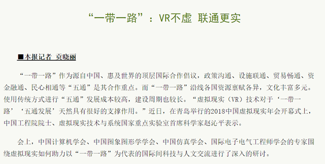【中國科學(xué)報】“一帶一路”:VR不虛 聯(lián)通更實
