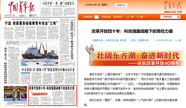 【中國青年報】改革開放四十年:科技強國戰(zhàn)略下的高校力量