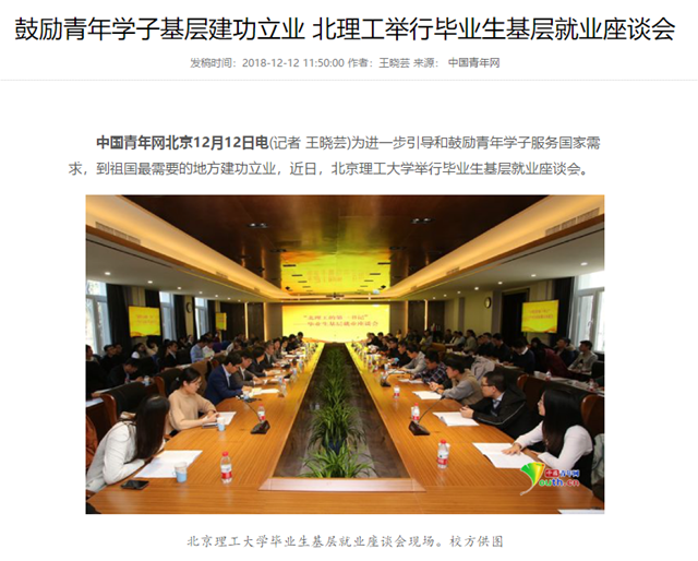 【中國青年網(wǎng)】鼓勵青年學(xué)子基層建功立業(yè) 北理工舉行畢業(yè)生基層就業(yè)座談會