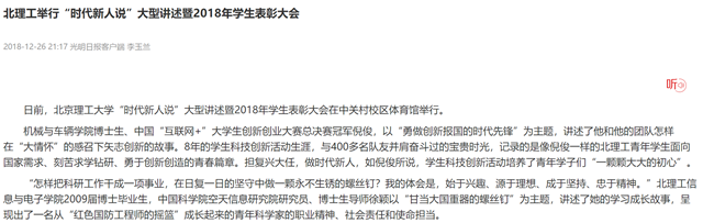 原文標(biāo)題:北理工舉行“時(shí)代新人說(shuō)”大型講述暨2018年學(xué)生表彰大會(huì)