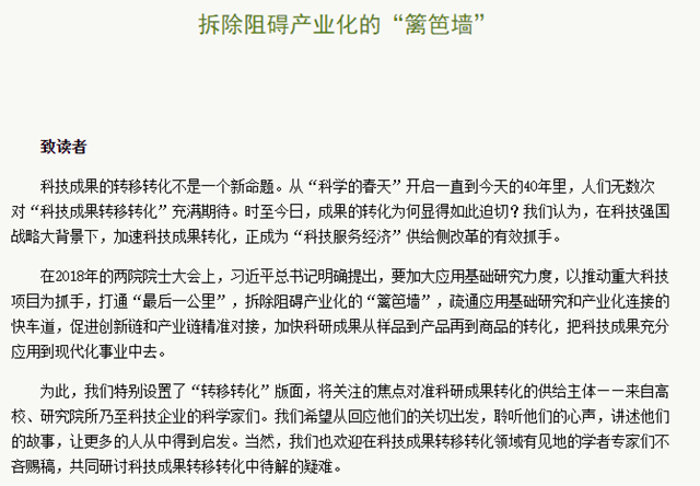 【中國(guó)科學(xué)報(bào)】拆除阻礙產(chǎn)業(yè)化的“籬笆墻”