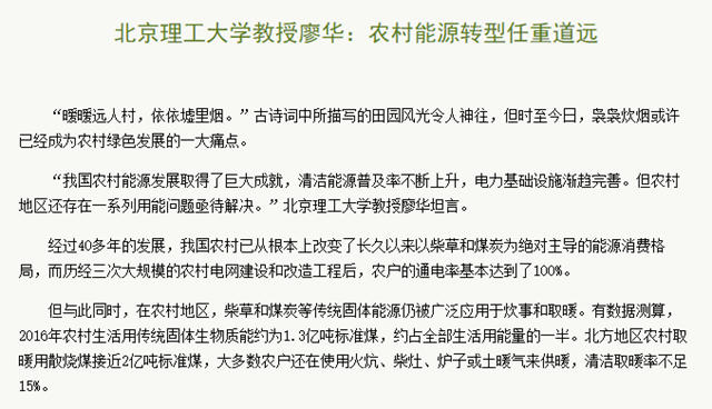 【科學(xué)網(wǎng)】北京理工大學(xué)教授廖華:農(nóng)村能源轉(zhuǎn)型任重道遠(yuǎn)