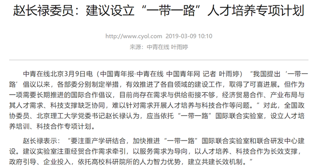 【兩會(huì)?中青在線】趙長(zhǎng)祿委員:建議設(shè)立“一帶一路”人才培養(yǎng)專項(xiàng)計(jì)劃