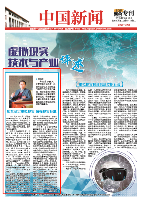 【兩會?中國新聞】王涌天委員:加緊制定虛擬現(xiàn)實(shí) 增強(qiáng)現(xiàn)實(shí)標(biāo)準(zhǔn)