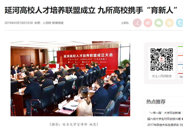 【人民網】延河高校人才培養(yǎng)聯(lián)盟成立九所高校攜手“育新人”