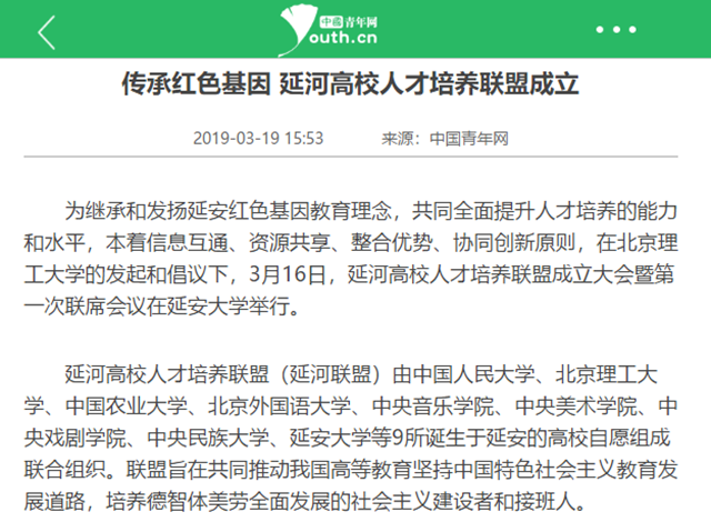 【中國青年網(wǎng)】傳承紅色基因 延河高校人才培養(yǎng)聯(lián)盟成立