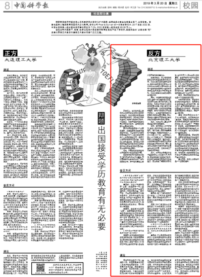 【中國(guó)科學(xué)報(bào)】辯題 出國(guó)接受學(xué)歷教育有無(wú)必要