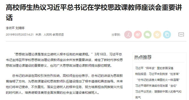 【人民網(wǎng)】高校師生熱議習近平總書記在學校思政課教師座談會重要講話