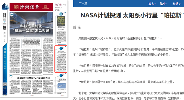 【新華日?qǐng)?bào)】NASA計(jì)劃探測(cè) 太陽系小行星“帕拉斯”