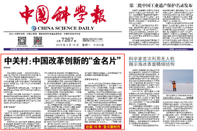 【中國科學(xué)報(bào)】中關(guān)村:中國改革創(chuàng)新的“金名片”